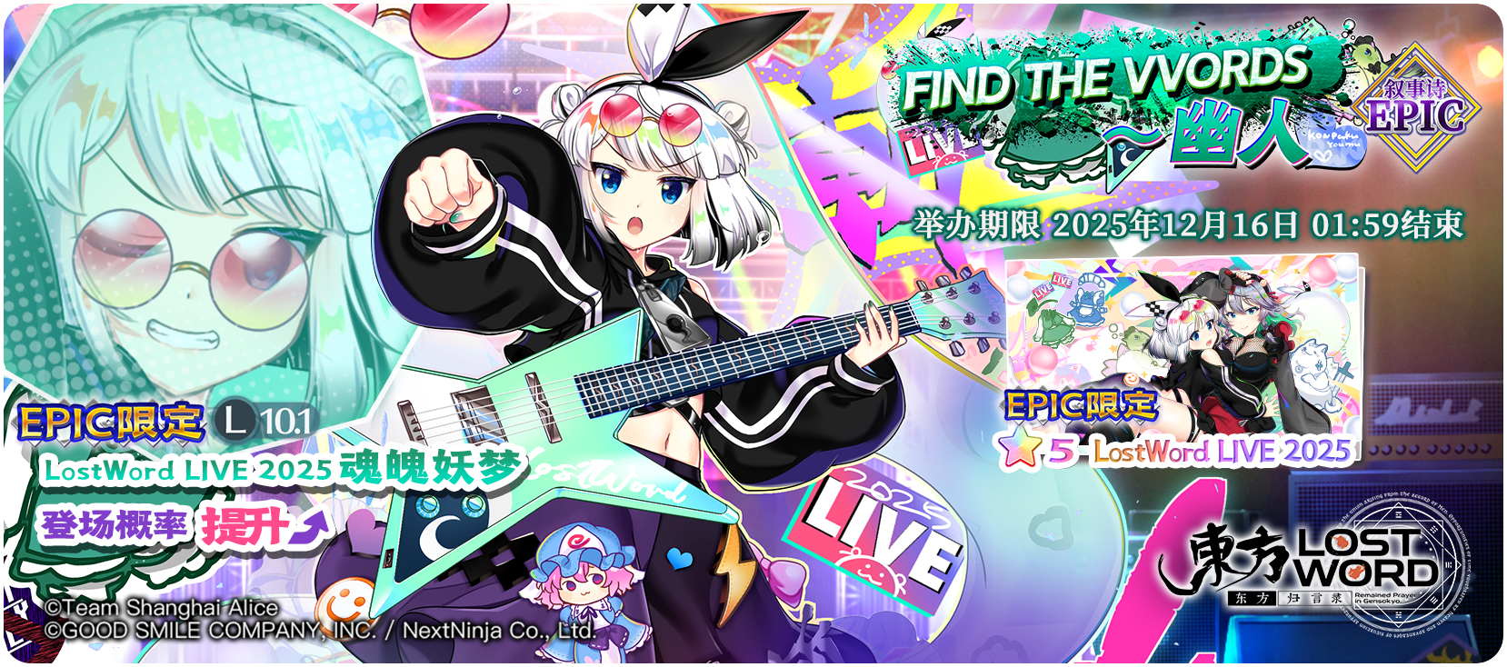 ※「FIND THE VVORDS?幽人 EPIC」中需要交换P400才能交换「LostWord LIVE 2025 魂魄妖梦」。