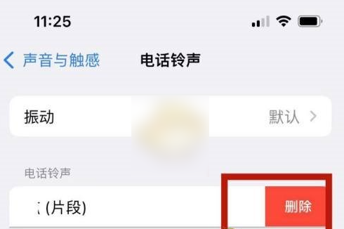 3、将需要删除的铃声进行左滑,点击删除即可。