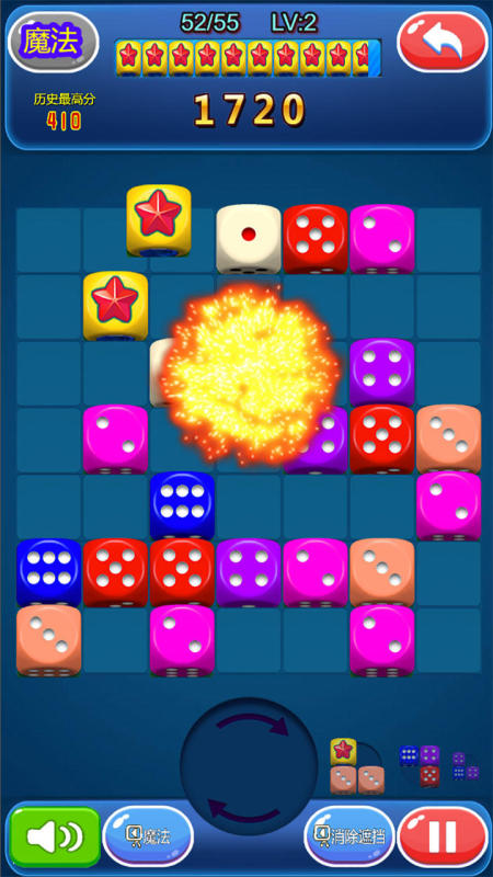《豆豆合体》将传统消除机制与骰子点数组合逻辑相融合,所有豆豆单元均以立体方块形态呈现,每个面点数与主色调构成唯一标识。游戏界面采用扁平化插画风格,操作方式为拖拽式点数匹配——相同点数的豆豆碰撞后自动合体升级,触发连锁消除反应。整体节奏明快,规则简洁但具备延展性成长路径。