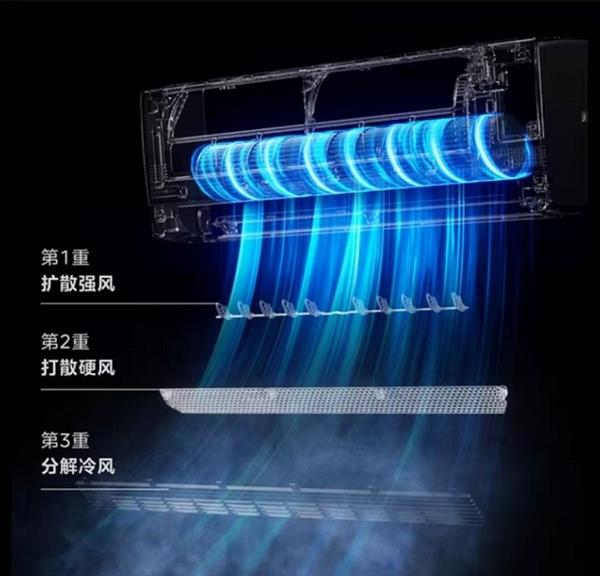 针对传统空调直吹易引发头痛,老人小孩不敢长时间待在风口附近的问题。其搭载的美的自主研发“性能四件套”,通过跑车级格栅分流气流、642孔空气悬架打散直冲气流、10片仿生柔风百叶扩散风感,吹出来的风细腻柔和如自然风。