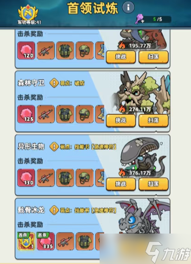 4、勇闯试验塔:闯关可以获得罐头和钞票,每当达到一定层数时可以额外获得罐头、士兵识别牌和钻石。