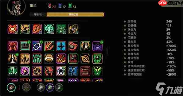 核心技能选择【核爆弹】,整体 build 围绕暴击率、暴击伤害以及核爆相关特效进行构建。