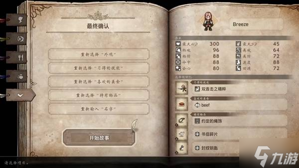 角色创建完毕后选择技能,开局提供三个技能选择,攻击、恢复和弱化技能;根据自己喜欢的战斗风格选择技能,此存档选择的是攻击技能,双连击之精粹。