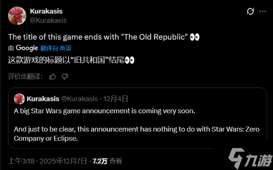 而就在今天凌晨,Kurakasis再次发布重磅消息:这款新作标题的结尾为“旧共和国”!