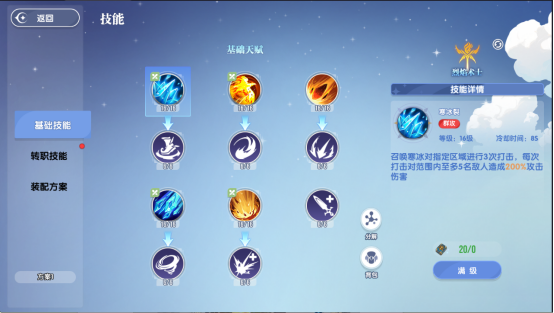 技能暴风雪对指定区域降下强力暴风雪造成多次伤害,学习了暴风雪凛冽后伤害还能进一步提高。虽然没有附加控制效果,但是大范围伤害依然使对方无处可躲,一般配合寒冰裂一起使用,能够做到打满全部伤害。技能烈焰凤凰能够召唤出火,凤凰向前方一条直线路径的敌人造成高额伤害,学习烈焰凤凰灼烧后,会对伤害目标附加灼烧效果接下来将持续受到灼烧伤害。这一技能虽然伤害很足,但是释放难度比较高范围比较小,对方容易躲开。