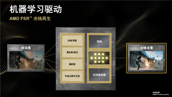 AMD FSR光线再生则基于神经网络的去噪器,适用于光线追踪和路径追踪,能有助于实现逼真的光照和反射效果,目前已在《使命召唤:黑色行动7》中上线,未来将有更多游戏支持。