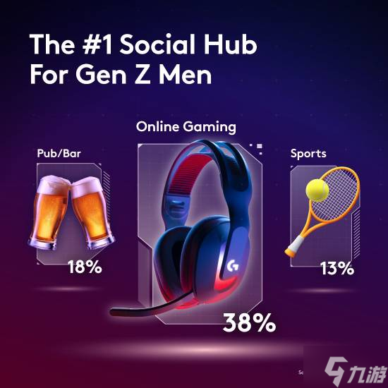 根据罗技G的一项研究,在参与调查的1500多名澳大利亚人中,61%的18~24岁男性表示,比起去酒吧,他们更愿意通过线上游戏与朋友共度时光。甚至有将近一半的年轻受访者明确表示,相比坐在酒吧喝啤酒,他们更偏好在家来一场游戏之夜。38%的Z世代男性表示,网络游戏是他们维系社交的首选。