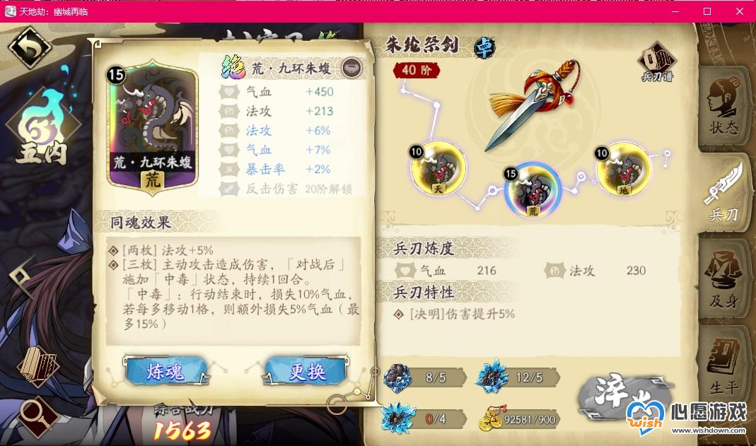 兵刃淬火影响到可以装备魂石数量,1级 15级 30级兵刃分别开1个附魔孔