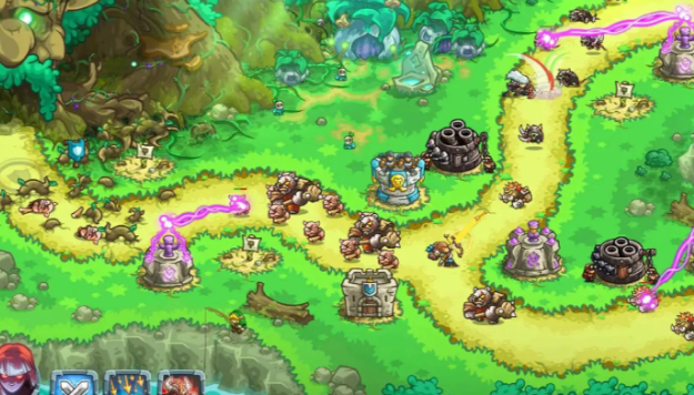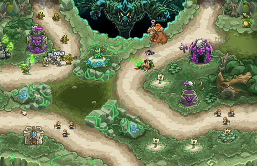 这是一款将闯关和塔防进行了完美结合的优秀游戏。在开局之后,小伙伴们需要先在路口建造兵营和箭塔,这样在遇到前来侵犯的小怪时,才能够尽快的把他们给清理掉。每次清理完一波小怪都能够获得大量的金币,而它们也将会是各位玩家用来升级箭塔等级的重要工具。在战斗中你可以同时控制两位英雄,根据关卡的不同,这些英雄的定位也应当有所区别。比如说有些时候玩家们需要选择一名输出英雄和一名控制型的英雄,而有些时候则更需要选择坦克和辅助的角色。