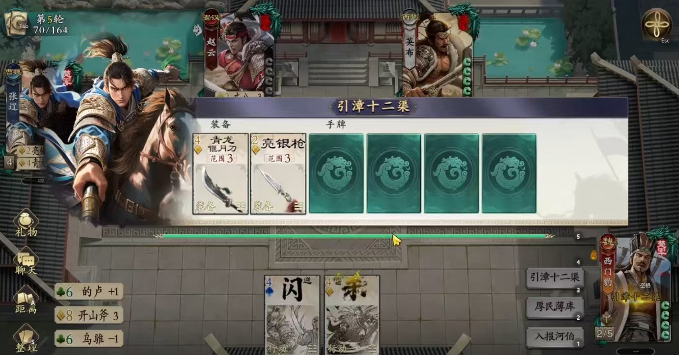 第三个技能入报河伯,限定技,可以将场上和弃牌堆中所有的黑桃牌洗回牌堆。这就相当于手牌中的黑桃都会被此技能洗入牌堆,这个技能其实就是配合引漳十二渠来发挥效果。相当于将黑桃牌给了对手,但是可以利用此技能再将对方手中的黑桃牌洗回到牌堆,所以该角色的三个技能设置的非常巧妙,环环相扣。