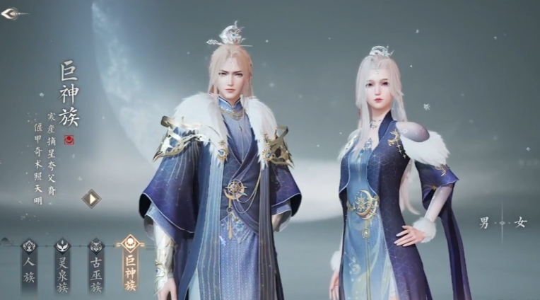 外观设计上,巨神族的辨识度源于其与星辰元素的深度绑定,雪白长发随动作飘逸时,发梢会浮现点点星光,面部的流光纹路会随昼夜交替呈现不同色泽,白昼时偏向暖金,夜幕下转为幽蓝,服饰上的日月星辰纹样并非静态装饰,而是会随角色技能释放呈现动态流转效果,例如施展防御技能时,衣摆处的星轨图案会形成闭环护盾光影,身形高大的特点让巨神族在群体中格外显眼,配合施法时周身环绕的星轨特效,既展现出神族后裔的威严,又凸显出与天地星辰相连的神秘气质。