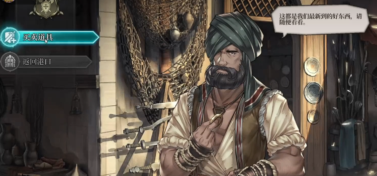 游戏内共设八大主要贸易港口,每个港口的装备商店均提供差异化商品组合,涵盖武器、防具、工具及特色饰品四大类。巴塞罗那以轻便近战与基础防护为主,供应匕首、布甲、礼帽与沙漏;那不勒斯则侧重古典军事风格,上架罗马短剑、皮甲、望远镜及瘟疫医生之喙。