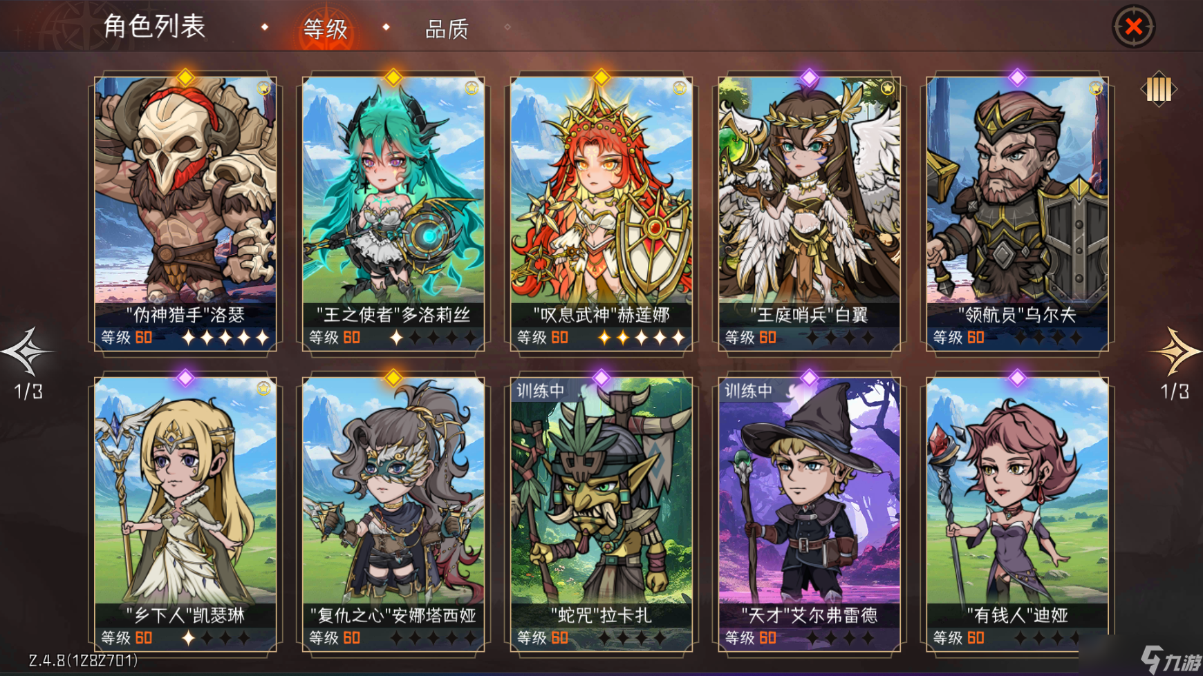 这是个不错的游戏。等以后抽到其他阵容了可以有很多玩法。我的阵容和装备都贴图了。目前我有金帝战(剑圣), 金跳跳和金帝骑。现在配的紫帝牧组队,装备甚至都没全+5 其他的都+1。 但是S6赛季的两个牧师我都抽到紫色的了,所以随时可以转双牧双战。或者我配个诺恩圣骑组双骑双战。 建议大家前期把金色经验加成卷都用上。迅速让英雄60级。然后委托任务挂紫色英雄碎片。50层后特别是T5装备开放后用上金色装备和材料加成。用最快的方式让第一个输出主力5星毕业