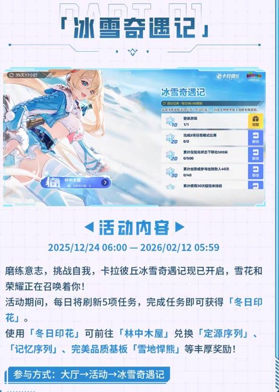 冰雪奇遇记:大厅→活动→冰雪奇遇记
