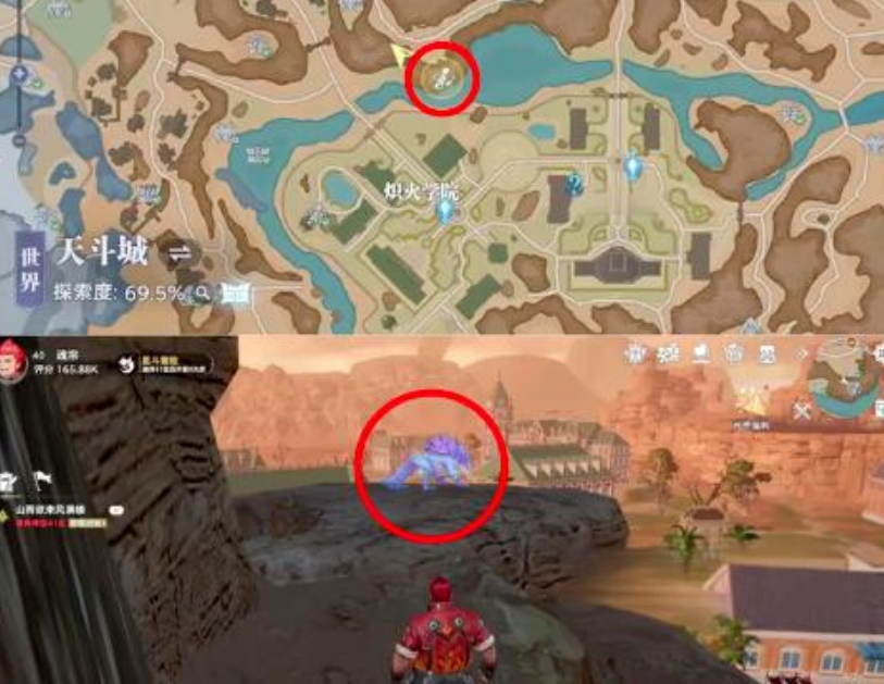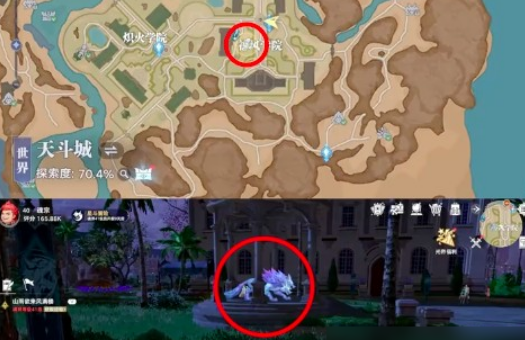 第四个回忆点相对来说稍微复杂一点,它位于联合学院的右侧。玩家需要沿着大路走,前往河道区域,最后抵达天斗城居民区的西北方。地图上会显示出一个明显的卷轴标记,走到这个位置后,记忆会自动解锁。