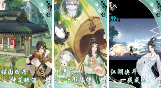 充满古风佛系的治愈类作品,有慢节奏生活模式,打破传统江湖战争,有多维度特色玩法,体验四季不同环境变化,参与烹饪、种田等经营活动,每位角色都有独立情感和具体的行为模拟,注重慢生活美学,鼓励玩家通过锻炼的方式让角色成长并完成家园建设,强调个人参与到田园生活当中,也有奇遇挑战,在离线挂机情况下也能学习武功。