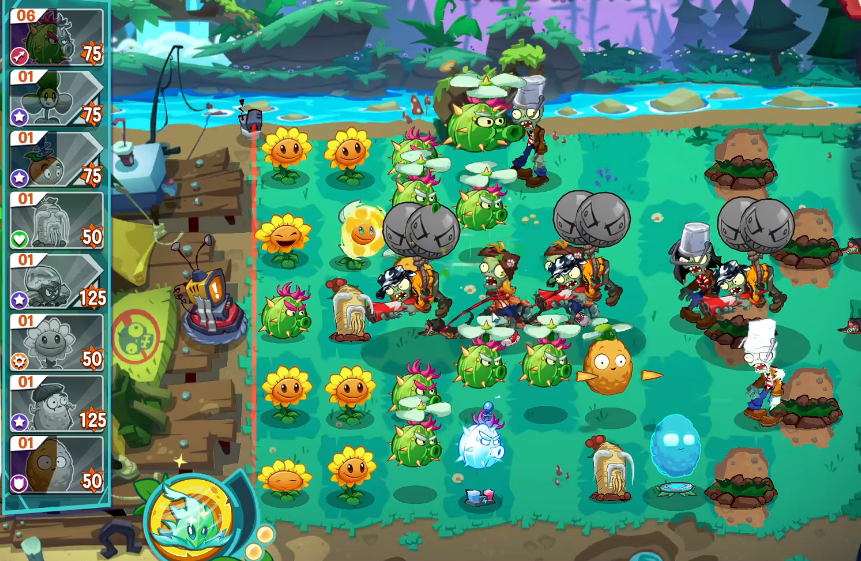 有吸引力会增加很多创新性的设计,就比如这些植物,不再是基础的设定,而是可以通过喂食或者升级的方式提升战斗能力,另外在这个游戏里还会有更多不同种类的僵尸,需要深入了解每一个植物的特性,这样才能结合地形特点,攻击这些僵尸,顺利守护场景不受僵尸的入侵,另外在游戏里还加入了大量的剧情,通过这些剧情,玩家可以和戴夫一起进入到其他的场景中,而不是像其他的作品一样单纯的在后院对抗僵尸。