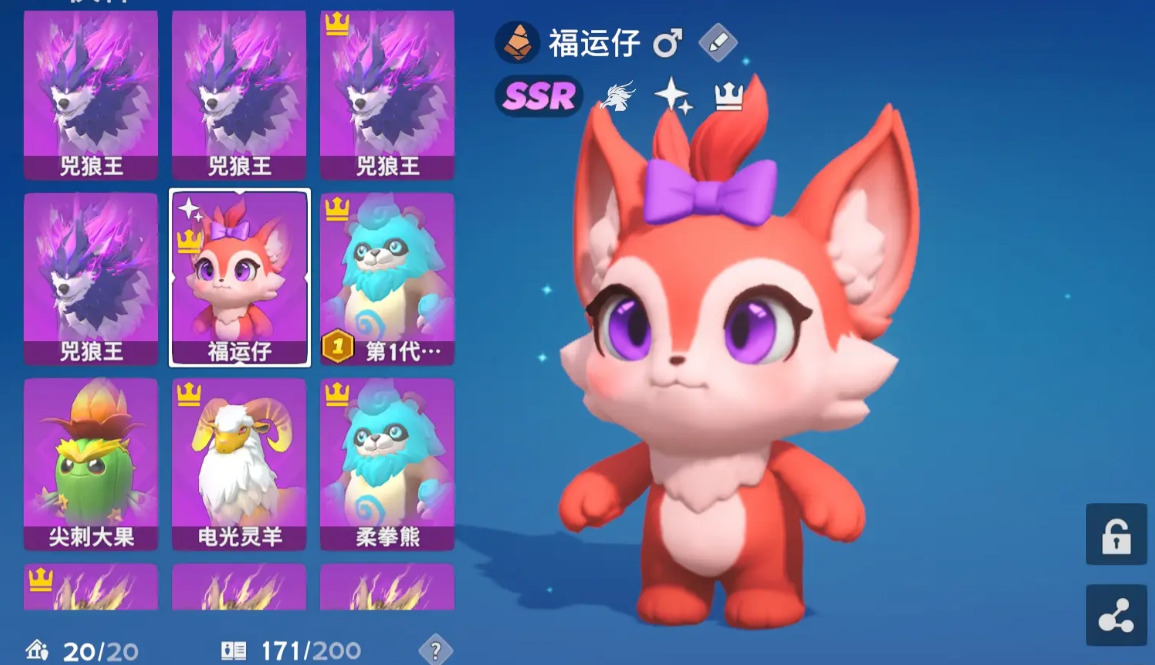 其实大家可以看到游戏放出的三个精灵都是60级,还有一些宝贝,都是可以通过自己的属性全部进行养成,增加自身数值的,在目前这些精灵的雷电属性上其实推荐的宠物也是很多的,当前看待他们的天赋为金色的,是目前预见的最高级别,而灰色级别天赋是最差的,绿色级别天赋比灰色级别天赋好一些,蓝色级别天赋比绿色级别天赋强点,紫色级别天赋比蓝色级别天赋强,这种技能的精灵可以被队伍中的其他精灵压制,如果是拿到了更多养成资源但是不想用的话,玩家自己可以售卖背包里现有的物品,左边的伙伴背包可以查看精灵的血量或者投喂食物。