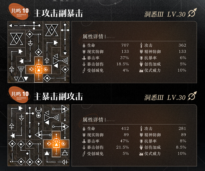 ※共鸣10『主暴击副攻击』摆法: