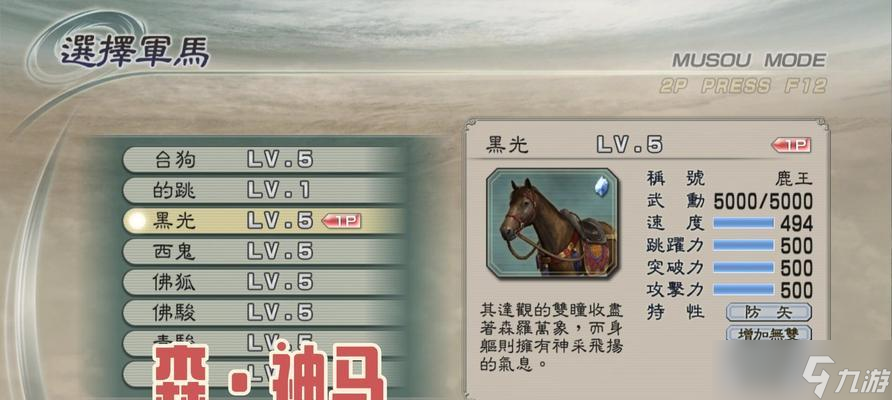 在《真三国无双8》这款游戏中,养马是一个重要的系统,它不仅可以帮助玩家提升角色的战斗力,还能增加游戏的乐趣。本文将为大家分享一些关于养马的攻略,帮助玩家打造最强战马,征服三国乱世。
