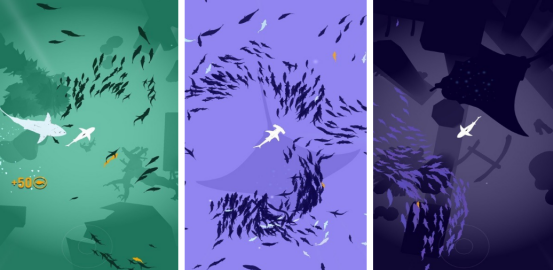玩家扮演饥饿状态的大白鲨,核心目标为高效搜寻并击中体型小于自身的鱼类单位,以补充能量值并推动属性成长。美术风格采用高饱和度水下光影渲染,营造通透梦幻的视觉氛围;物理碰撞与镜头运镜经过优化,确保长时间游玩无晕动不适。同时设置高阶威胁生物作为动态挑战,要求玩家预判路径、主动规避。