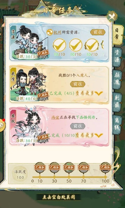 同时,各位在开启日常玩法后,也要记得在当日将日常给做完。该玩法所给的经验是固定的,且每天都会刷新,若是玩家们少做一天,当日的经验会被直接浪费掉,很难再找补回来。尤其在玩家们缺少主线和支线进行升级的情况下,日常给的经验会成为玩家们获取经验的最好手段。日常的清理顺序优先考虑完成非战斗类,例如一些资源收集类、委托类的任务,然后再集中精力把需要战斗的委托给完成,这样整体的清日常速度会快一些。