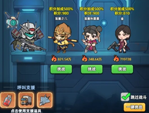 进入到活动里面以后,是允许大家适用支援道具的,游戏中能够让大家使用的道具分贝是肾上腺素、撞大运咯以及霉军飞机,肾上腺素主要是在自身挑战死亡以后,有一次复活的机会,还能随机刷出3个对手,撞大运咯则能够直接将最强的三个敌人给秒杀掉,死亡以后虽然能够复活,氪疲劳值却不会恢复,霉军飞机,则能够召唤出霉军飞机轰炸对人。