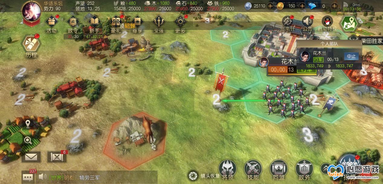 一开始我就是用花木兰做主将的军队,一路上攻占了很多的地,开荒真的可以说绝大部分都是靠花木兰的,而且行军的效率也是挺高,不过主要还是要战略。