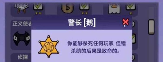 警长拥有主动出击的能力,可以刀掉任意玩家,但如果误杀了同阵营的鹅则会一同出局。成功刀中鸭子或中立角色则能直接将其淘汰。