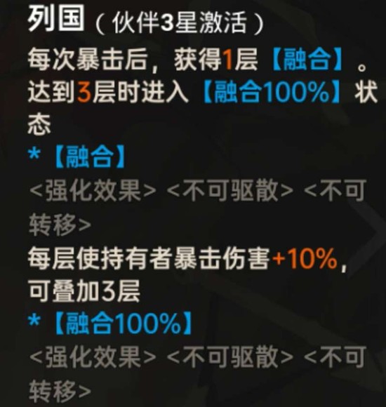 晋升至五星后,在满融合度状态下,他的暴击还能触发吸血效果,并获得一个持续增伤的增益效果,这显著增强了他的持续作战能力与生存容错空间。