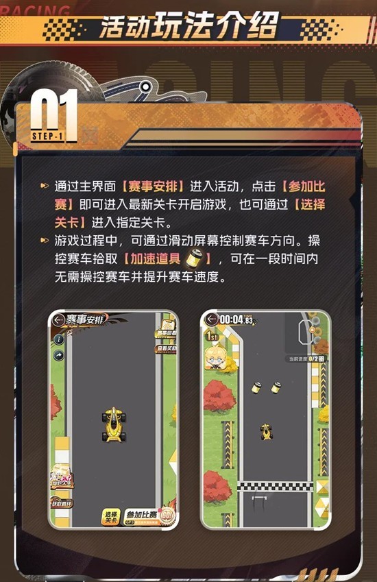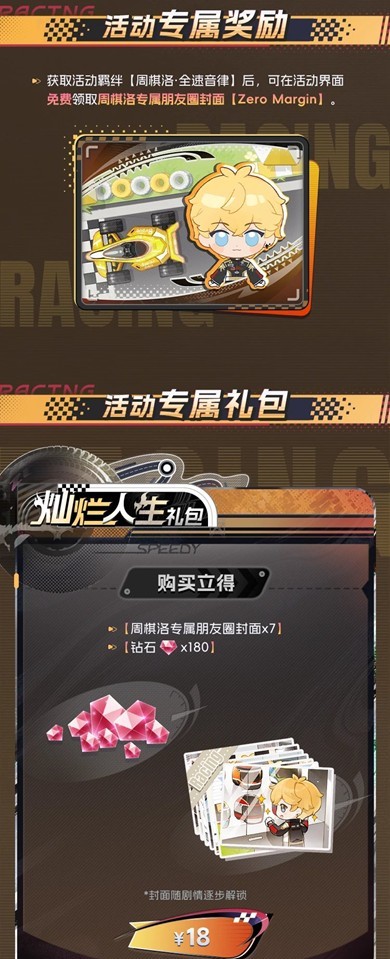 1.活动期间,首次完成新的赛车游戏关卡,即可阅读全新赛事剧情并获得周棋洛专属手账贴纸。