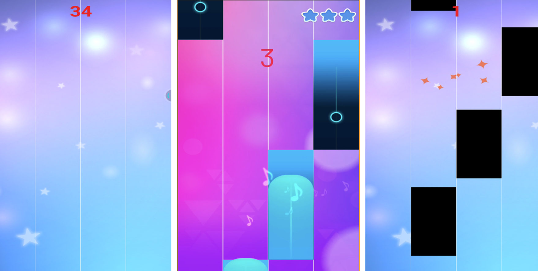 《节奏的钢琴白块》游戏在经典下落式点击的基础上,大幅度加强了音块的物理反馈感和连击特效。根据背景音乐的强弱节拍准确点击黑色方块、避开白色方块,随着曲目的难度增大,玩家会得到强烈的感官冲击。该作最出彩的地方就是其庞大的版权曲库,包含从莫扎特经典协奏曲到当下流行电子乐的各种曲风。其阶梯式难度设计很严格,玩家可以根据自己手速情况选择适合自己的节奏等级。