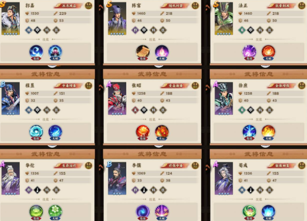 阵容构建需遵循“羁绊优先、星级次之”的原则。例如,6名谋士即可激活基础羁绊效果,显著提升群体法术伤害与控制概率;此时即便全员为低星武将,实战表现也远超单个高星但无羁绊支撑的个体。资源应集中投入核心角色:郭嘉与程昱作为主力法伤输出,建议优先培养至黄色二星及以上;华佗承担关键治疗职能,星级同样不可忽视;其余谋士仅需满足羁绊解锁条件,初期无需额外投入养成资源。