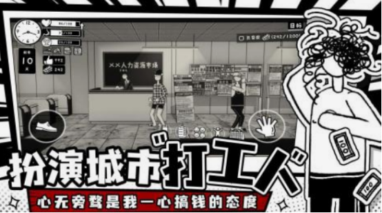 采用高对比度黑白美术风格,营造出沉稳而略带压抑的现实氛围。主角背负家庭责任进入大城市谋生,每一份工作都关联着房租、医疗、子女教育等刚性支出。游戏中NPC具有记忆与情绪系统,长期稳定就业或主动跳槽会引发不同人际反馈;加班、请假、升职等行为也会影响角色健康值与社会评价。玩法强调“可持续打工”,拒绝快餐式成长。