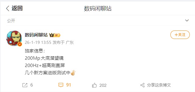 编辑点评:200Hz+高刷直屏是一加16的核心差异化亮点,延续了品牌在流畅体验上的深耕优势。但分辨率与功耗的平衡仍是关键考题,毕竟高刷与续航的兼顾直接影响实际体验。若能妥善解决这一痛点,再叠加旗舰芯片与200MP影像的补强,其在2026年旗舰市场的竞争力值得期待。