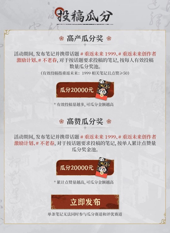 在「小红书」平台,带活动指定话题,围绕《重返未来:1999》发布原创作品,即可成功参与投稿活动。