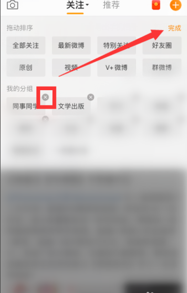 已有分组右上角就会出现“x”符号,点击即可删除,删除后点击右上角“完成”即可