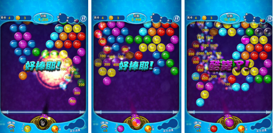 色彩缤纷的球球,会从屏幕最上方逐渐涌落下来,如今已经创造出数百个不同的关卡,其次还包括数10款魔力球球,在特别梦幻的海世界当中,大家通过精准瞄准的方式,就可以将相同颜色的球球发生碰撞,以此快速消除,每次消除之后都会看到自己的分数,如果一次性消除越多的话,那么屏幕上也会看到分数值快速翻倍,同时还可看到酷毙了这样的字眼。