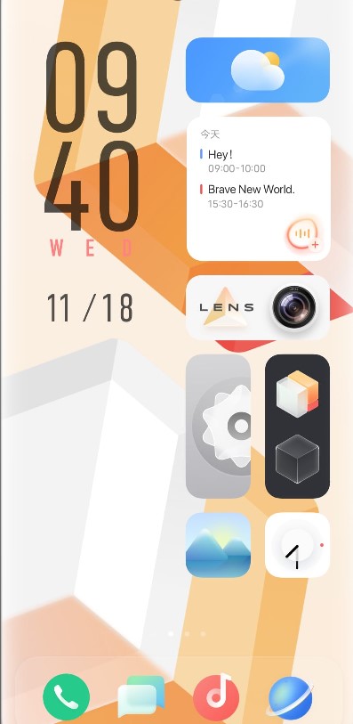 3、OriginOS探索桌面需在桌面中间位置上滑,即可查看全部应用程序。
