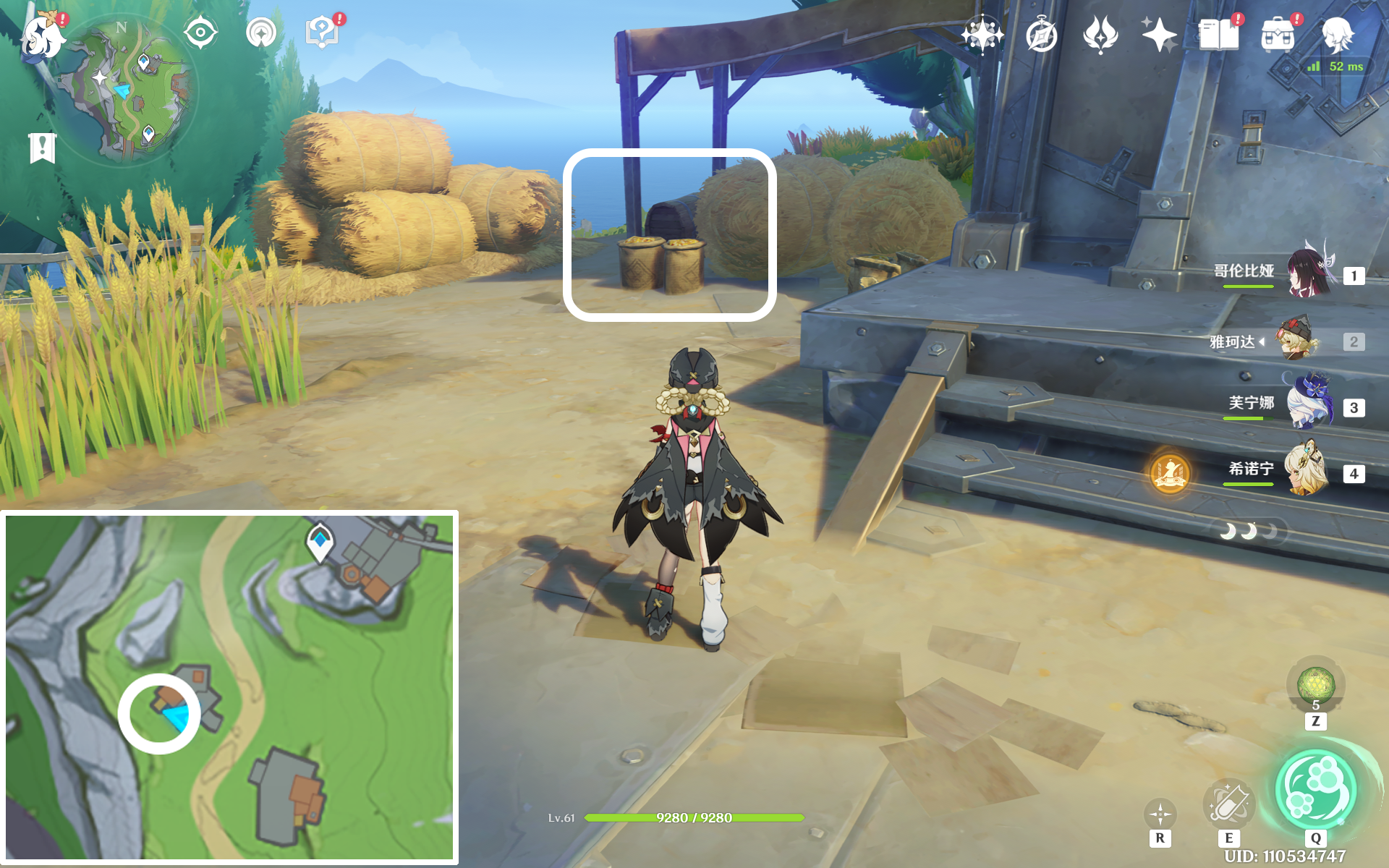 随后不用急着回报,在第三处麦田旁建筑东北侧,也有个普通的宝箱。(此处图像设置如果开了人群密度高,会被NPC挡住。)