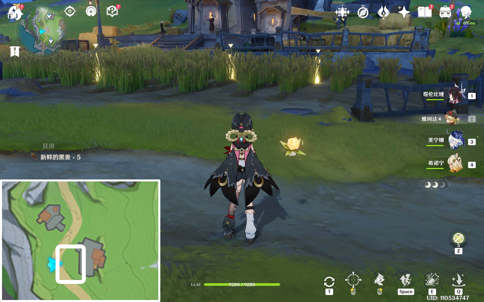 对话后她会让旅行者帮忙收麦子,不过不着急,在她小屋和麦田旁的草棚中有一个普通的宝箱。