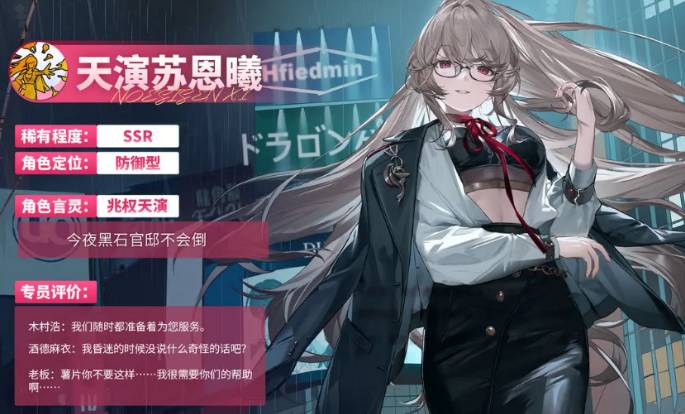 而当她的被动技能“黑天鹅”解锁后,苏恩曦的实力会得到极大的提升。只要她还在场,己方全体的伤害吸收能力就会增强,这让她成为了团队中的强力保护伞。同时,她回合开始时并不会进入“透支”状态,这让她能够更好地为队友提供援助,及时触发“特勤后援”,为全体队友加上“金融投资”,提升整个队伍的防御能力。而每次回合结束时,她若处于“透支”状态,又能重新激活她的支援技能,给队友带来持续的保护。