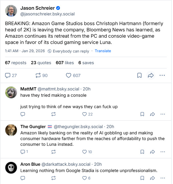 消息来自于彭博社,就在同一天,亚马逊宣布了大规模裁员计划,预计将影响公司范围内约1.6万人。此前,亚马逊在去年10月也曾进行过一轮裁员,裁减了1.4万人,其中亚马逊游戏工作室受到的冲击尤为严重,因为该公司缩减了其3A级游戏开发项目。