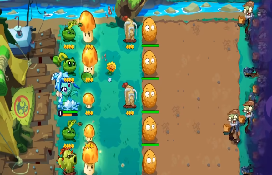 在游戏里还融入了动态关卡的设定,岛屿可能随时会坠落,游戏里原有的海水也可能会涨落,这样这些植物就会被水淹没,无法进行攻击,玩家需要尽快选择水生植物作为替补,并且根据僵尸的动态调整攻击的方向,只有这样才能更好地抗衡对手,这种不确定性,你在闯关的过程中随时都体验到新鲜感,这也可以激励玩家不断挑战,和传统游戏不同的是,里面的难度并不再是循序渐进的设定,而是会根据玩家当前的表现决定后续关卡的难度,想要赢得胜利就需要不断调整自身的阵容和战术。