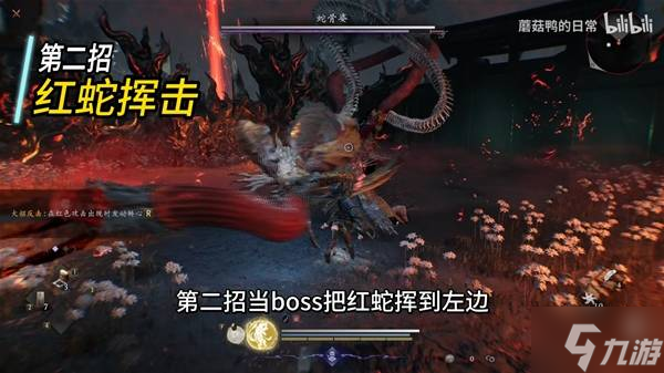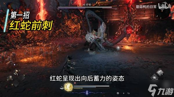 第三招BOSS会停在原地,之后我们观察红蛇,红蛇口中会口含火焰。