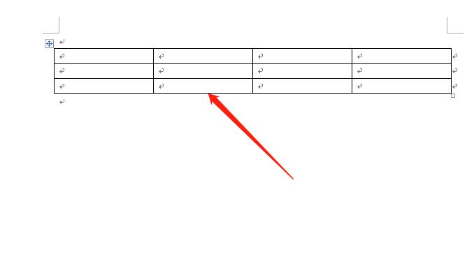 4.这时在编辑页面上,用户就可以看到插入的表格,可是每个格子中都含有一个箭头标记