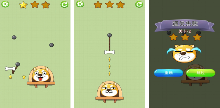 以拟物化物理引擎驱动的轻量解谜作品。主角是一只表情生动的卡通小狗,玩家需精准切割悬挂糖果或骨头的绳索,借助重力、摆动、反弹等真实物理效果,引导目标落入狗嘴。过程中同步收集金币解锁新皮肤与场景,关卡设计强调观察力与时机把控,失败成本低、重试流畅,极易形成“再试一关”的正向循环。
