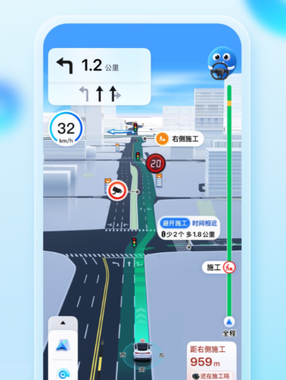 和前一款一样,该软件还提供了精确的速度指示和车辆速度显示。它的特点是深入运用了人工智能技术:在一些城市实现了“全景智能车道级导航”,可以在复杂的道路上为用户提供准确的车道级引导和相应的限速信息。它的声音助手可以更自然的发出速度警告。与此同时,依靠其强有力的搜索和内容生态,可以方便地在旅途中查询到服务区和加油站等信息,并给出相应路段的推荐车速。