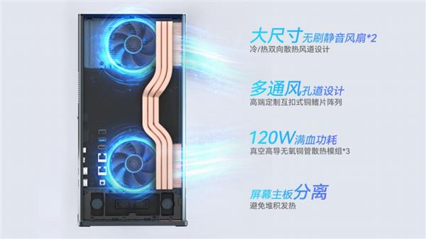 在功耗方面,AideaONE R27 采用HyperCryo智能散热方案,通过大尺寸静音风扇结合环绕式对流风道,协同带走热量,确保性能的同时无惧过热降频,整机散热功耗可达 120W,BIOS 限制 CPU 功耗 120W,确保高负载运行时不降频、无噪音干扰,既保障性能释放,又兼顾能效表现。同时,配备 240W 桌面式外置电源适配器支持 AC 110–240V 宽电压 、DC 19V/12.6A输出,DC 5.5×2.5mm 直角插头设计更节省空间,适配不同地区用电标准,满足日常使用场景的供电需求。