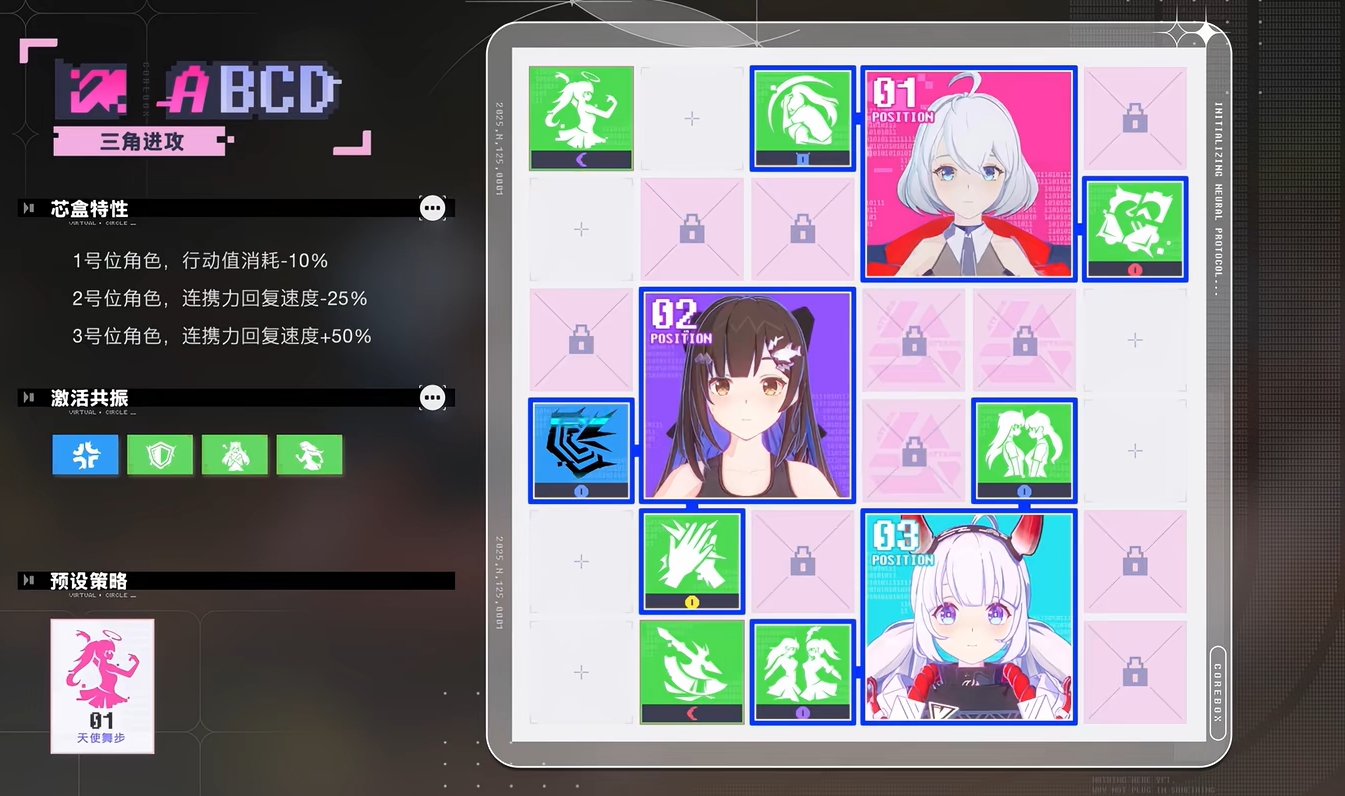作为一款聚焦V圈题材的策略养成类作品,《虚环》构建了独特的“战斗偶像”体系。玩家将担任团队领队,统筹管理多位具备独立人格与声线的虚拟主播角色,带领她们与其他偶像团体展开竞技对抗,争夺行业至高荣誉。所有角色语音均由对应虚拟主播本人录制,强化真实感与代入感。核心玩法围绕“芯盒系统”展开:玩家可在芯盒中装配不同心得卡,每张卡片具备特定链接策略;满足条件后可触发团队增益或角色专属加成。战前支持自由调整卡片组合,战斗中亦可实时下达战术指令,动态切换作战风格。
